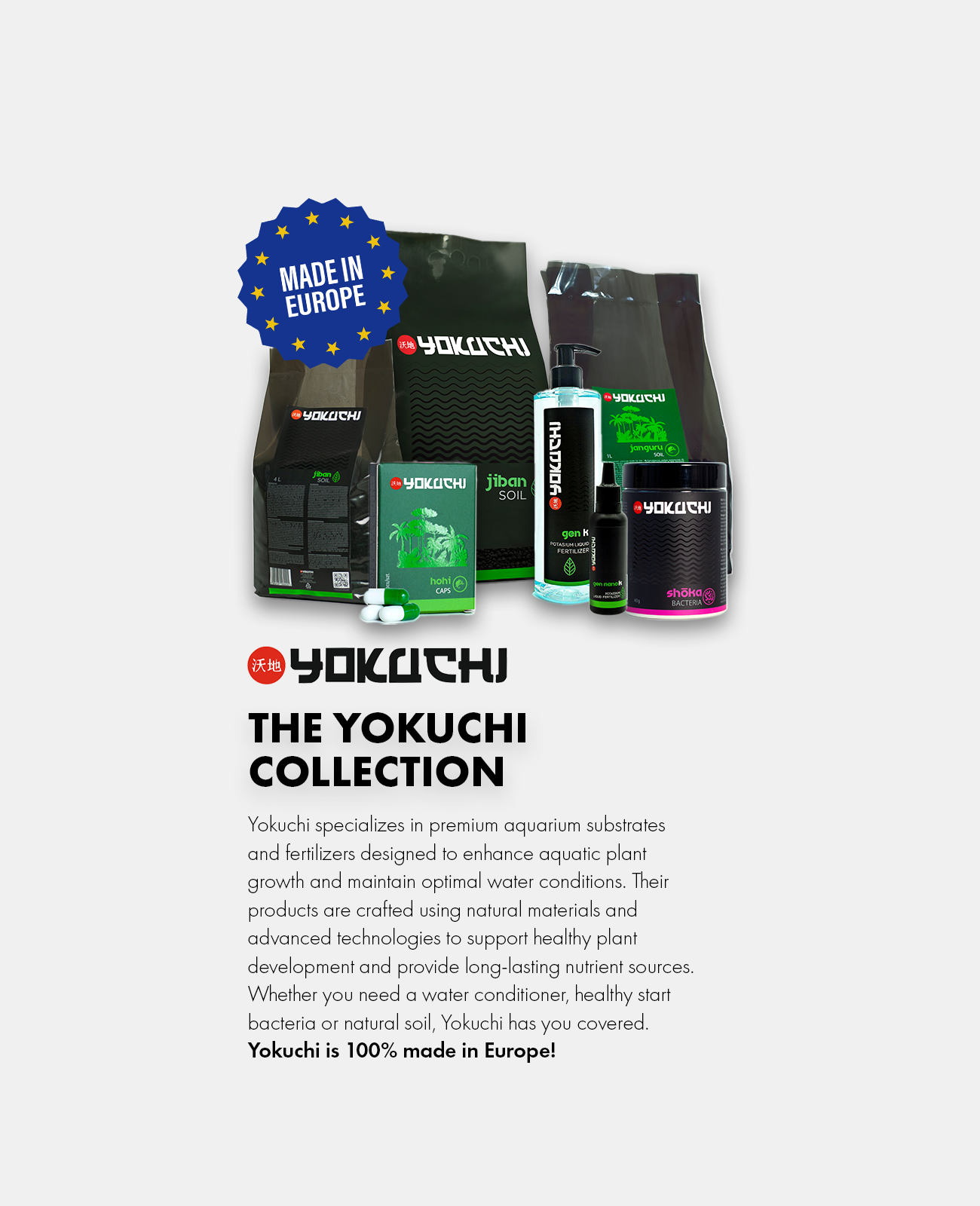 The Yokuchi Collection offers a complete, start-to-finish solution for building and maintaining a healthy, vibrant aquarium. From the initial setup with high-performance substrates, to tailored fertilization, water conditioner, and start bacteria.